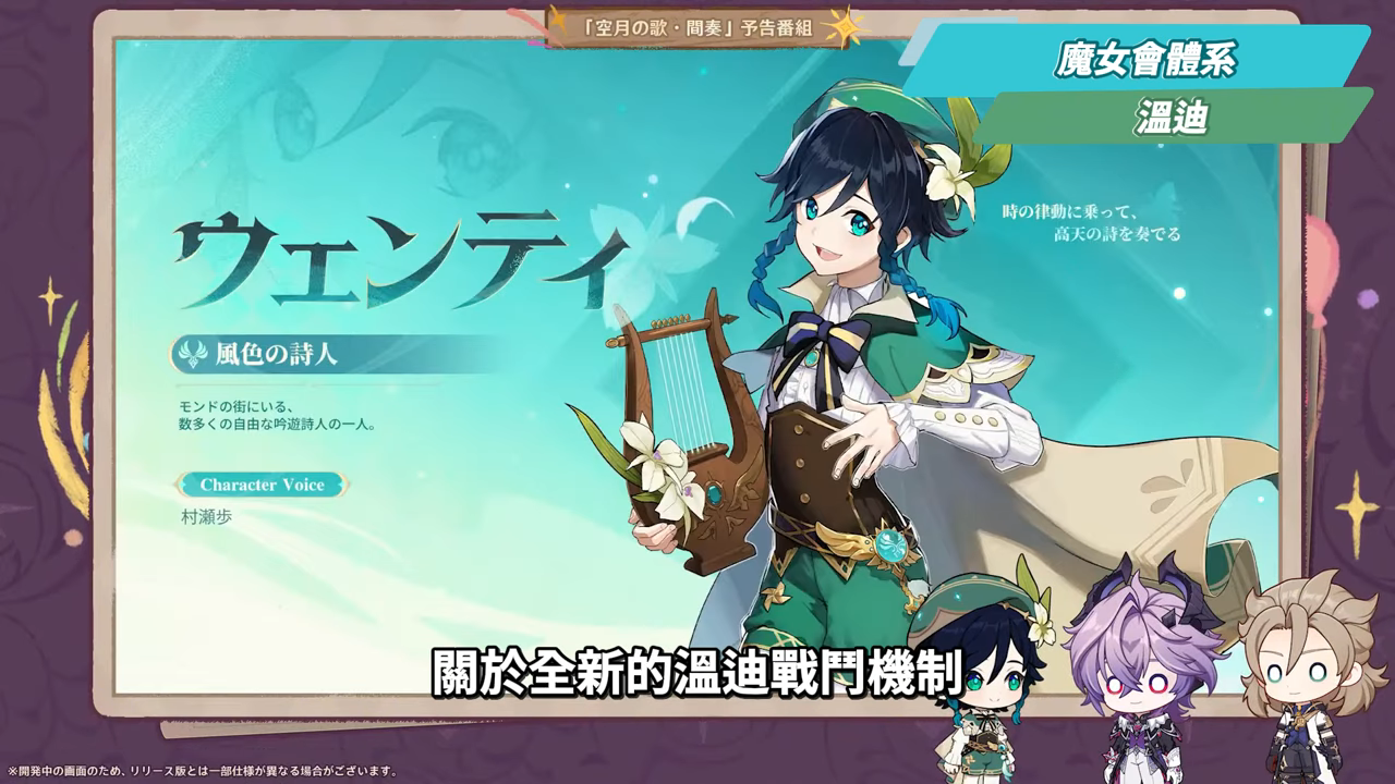 在前瞻中也釋出了關於全新的溫迪戰鬥機制,巴巴托斯終於要做事啦?改動後的溫迪,不只暴風之眼可以更精準地在怪物所在位置生成,大幅降低空大的情況發生,還能在開大後的暴風之眼持續期間,場上角色觸發擴散反應後,就會提高觸發角色和暴風之眼的傷害。而在暴風之眼持續期間,溫迪的普攻也會轉變為能穿透路徑上敵人的颶風箭,變成風元素傷害,同時再延長暴風之眼的持續時間,相當於加強了溫迪的站場輸出能力,而且變化過後的普攻,射擊時也會有著類似時鐘的特效。在月之三版本中,我們也會和溫迪,回到開服時期的那座位於蒙德、曾被時間眷顧的小島,在這裡找回溫迪散失的力量,並藉此獲得全新的能力。