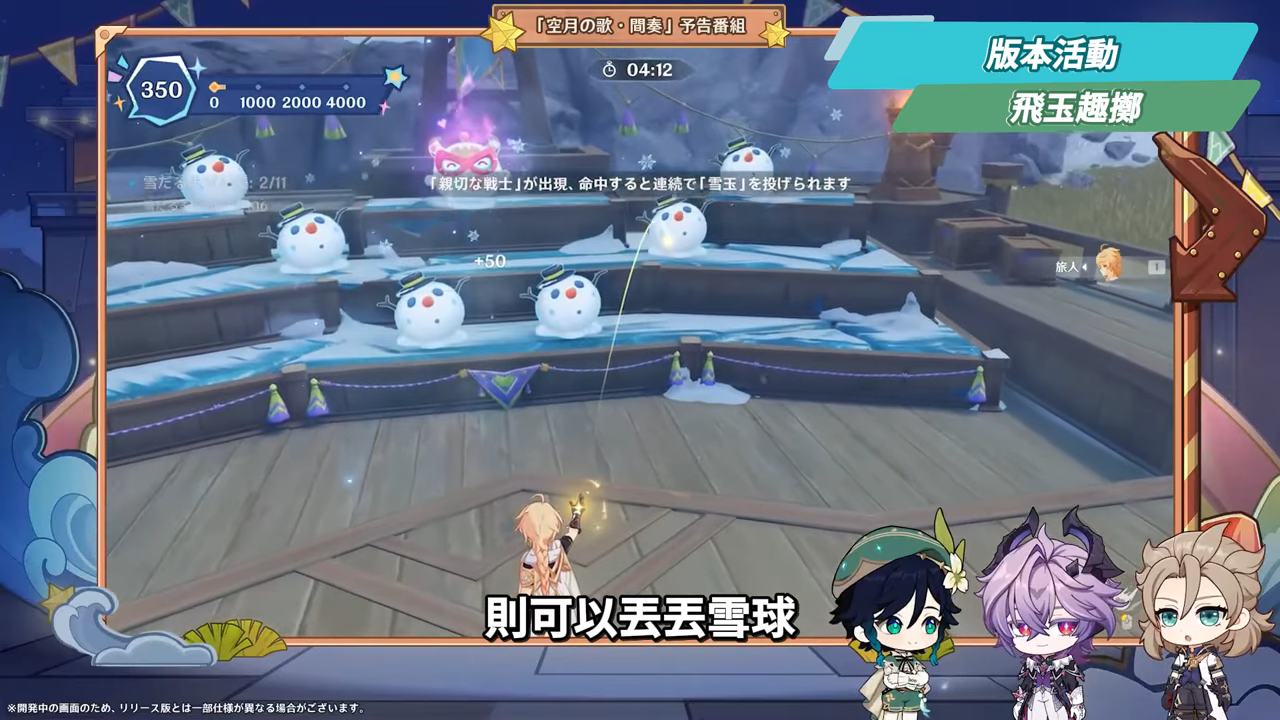 在「飛玉趣擲」的活動中,則可以丟丟雪球、釋放壓力,搭配擊破雪人獲得的增益,來拿到更多的分數。