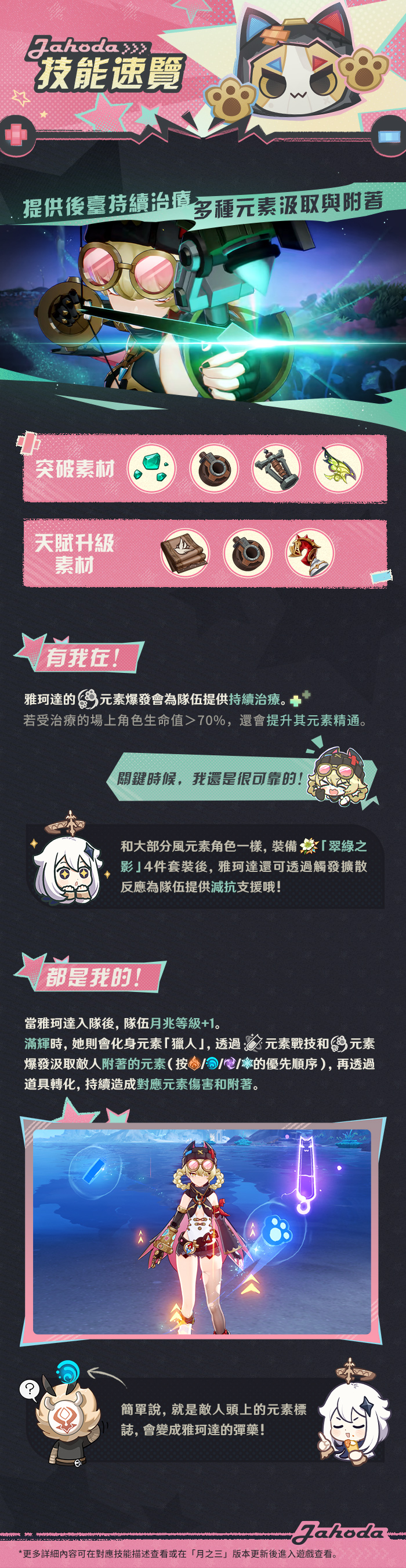 在之前的魔神任務中,雅珂達和旅行者及挪德卡萊眾人經歷了不少冒險,是一位十分可靠的夥伴。戰鬥中,她是一位能提供後臺治療的可靠輔助,還能巧妙利用敵人附著的元素進行反擊。更多細節,一起來看看吧!