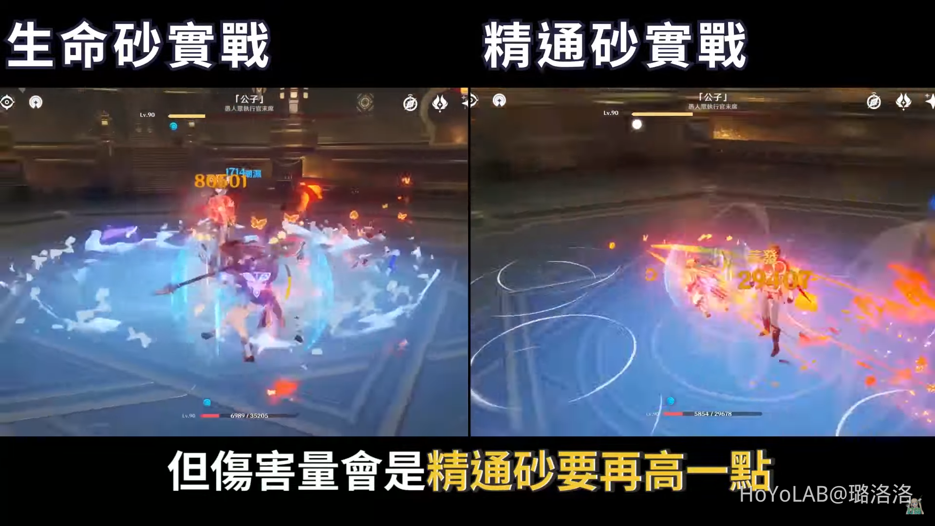 也有看到一些疑問胡桃要穿生命主屬性的時之砂,還是元素精通主屬性的時之砂,也有人說拿了專武護摩之杖就要穿元素精通的時之砂,洛洛以精煉5的護摩之杖實測兩種不同的時之砂下來,覺得其實效果上差不多,但傷害量會是精通砂要再高一點,大約血量超過30000或30000左右時可以改穿精通砂,以搭配護摩的情況來說精通砂會比生命砂收益再高一點。