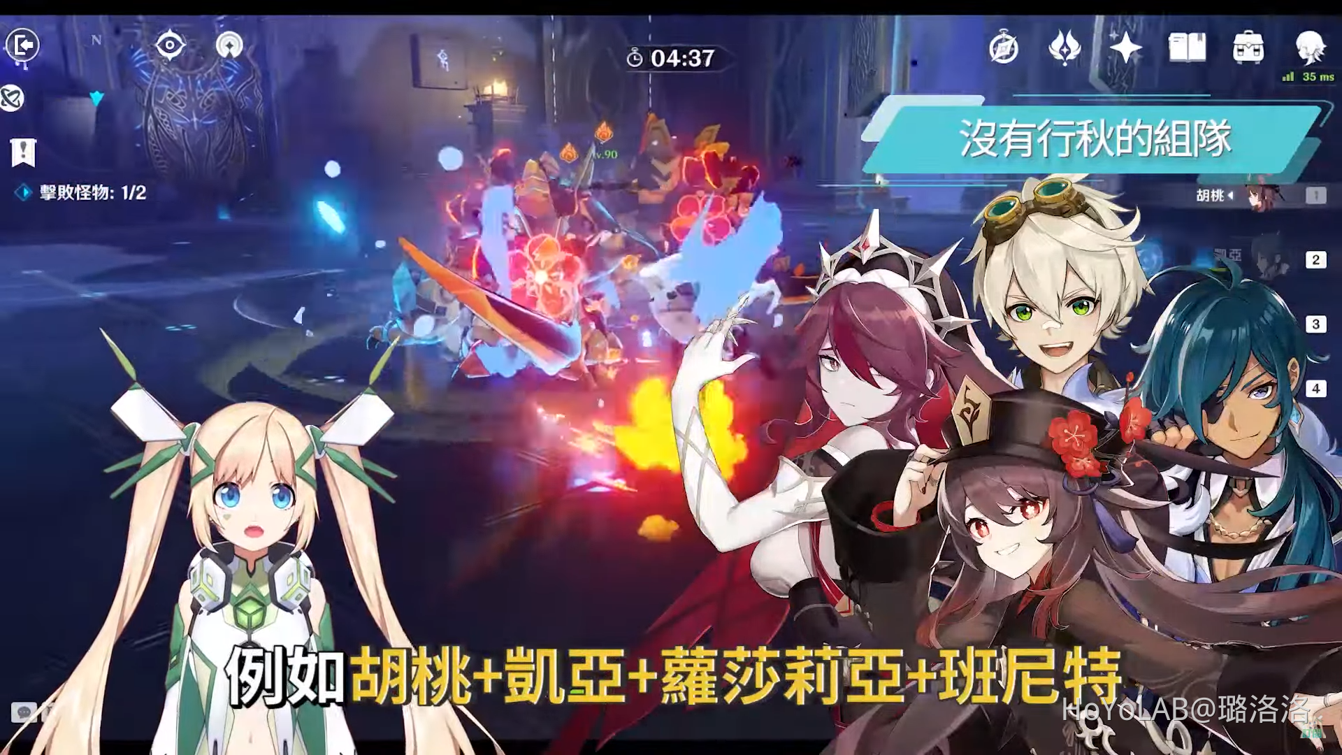 從2.0版本才加入的新手的話,剛好最近幾個卡池都沒有加倍行秋,所以也有很多新手的角色池中是沒有行秋的,那沒有行秋的話又可以怎麼組呢?我們可以從以火元素能打的反應來著手組隊,行秋和胡桃的綁定是在於行秋的水元素技能,和胡桃的技能可以達到招招蒸發的作用,而另外的掛水角色新手來說可能只有芭芭拉,但芭芭拉會回血又會影響到胡桃的壓血,因此也不適合,雷元素的超載又會讓胡桃還要去追著怪物跑浪費時間和耐力,所以剩下能打的反應最好就是融化了,這邊洛洛會建議組胡桃+2名冰元素角色+增傷工具人,例如胡桃+凱亞+蘿莎莉亞+班尼特,班尼特開大時胡桃就是吃到增傷馬上開大,然後盡快離開圓圈,又或是胡桃+凱亞+砂糖+迪奧娜,這邊主要都是站在可能世界等級3~4左右的新手配的隊伍,因此大世界探索其實這樣帶就很足夠了,每個新手的狀況也不太一樣,若是真的對組隊感到困難,也可以在每周日來到洛洛的直播間參加健檢帳號的環節。